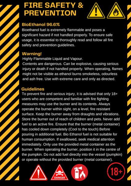 To ensure fuel safety and fire prevention, it is recommended to carefully review the safety data sheet provided by our bio ethanol supplier at www.ekolfuel.org